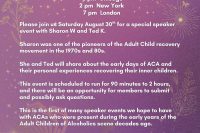 Special Speaker Event with Sharon W and Ted K about the early days of the Adult Child recovery movement. Sponsored… Read more ACA Pioneers Speaker Series